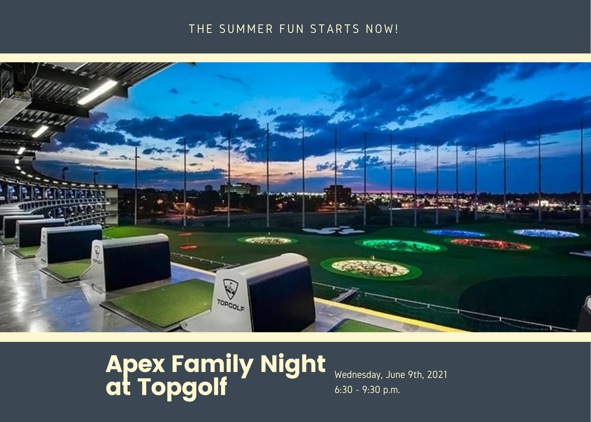 Join us as we kick off the summer with this fun event. Admission includes three hours of golf, summer picnic appetizers, and two premium drink tickets.